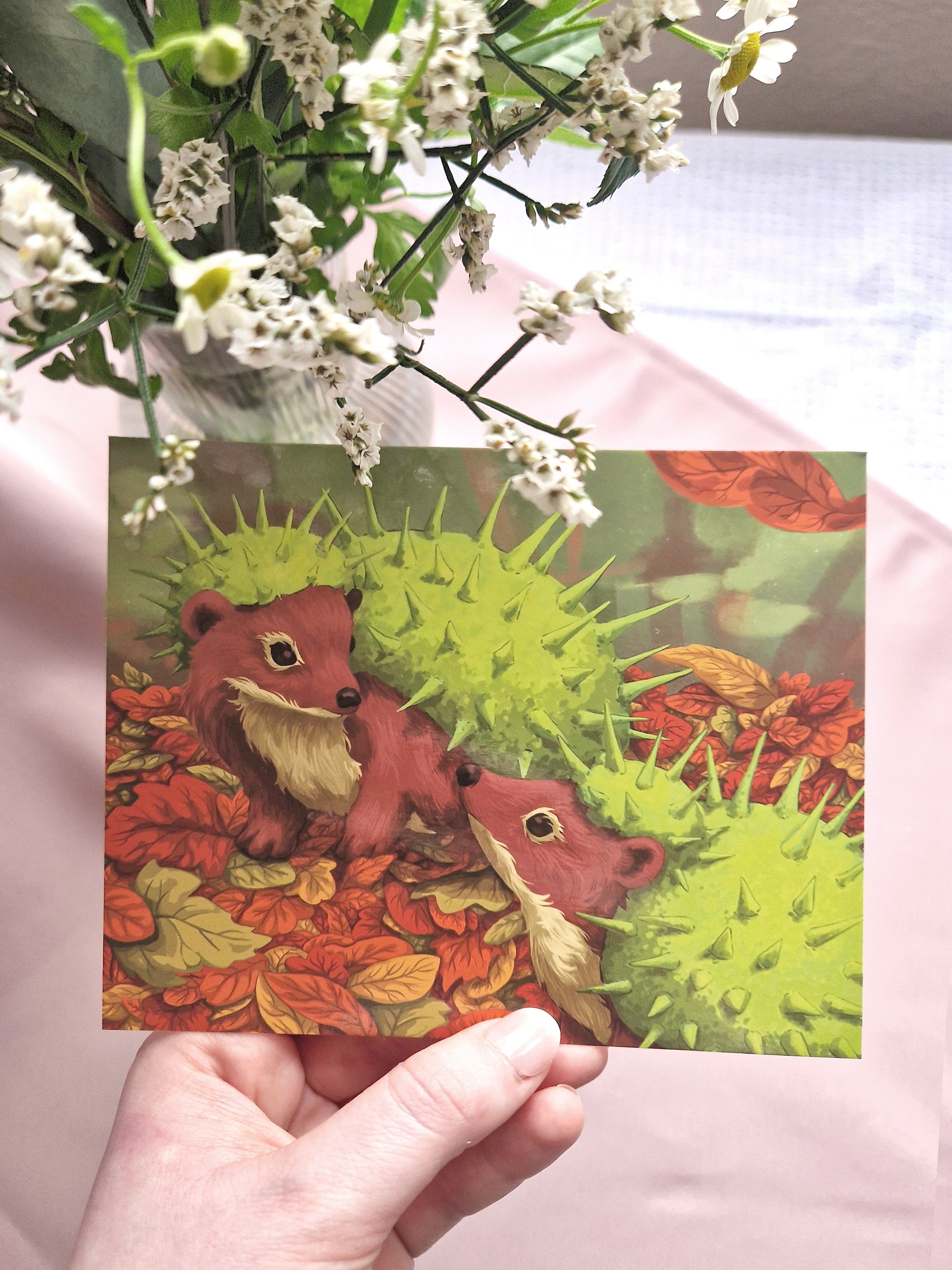 Eine hübsche Karte für alle, die niedliche Igel mögen, zum Schenken oder einfach dekorativ Aufstellen.