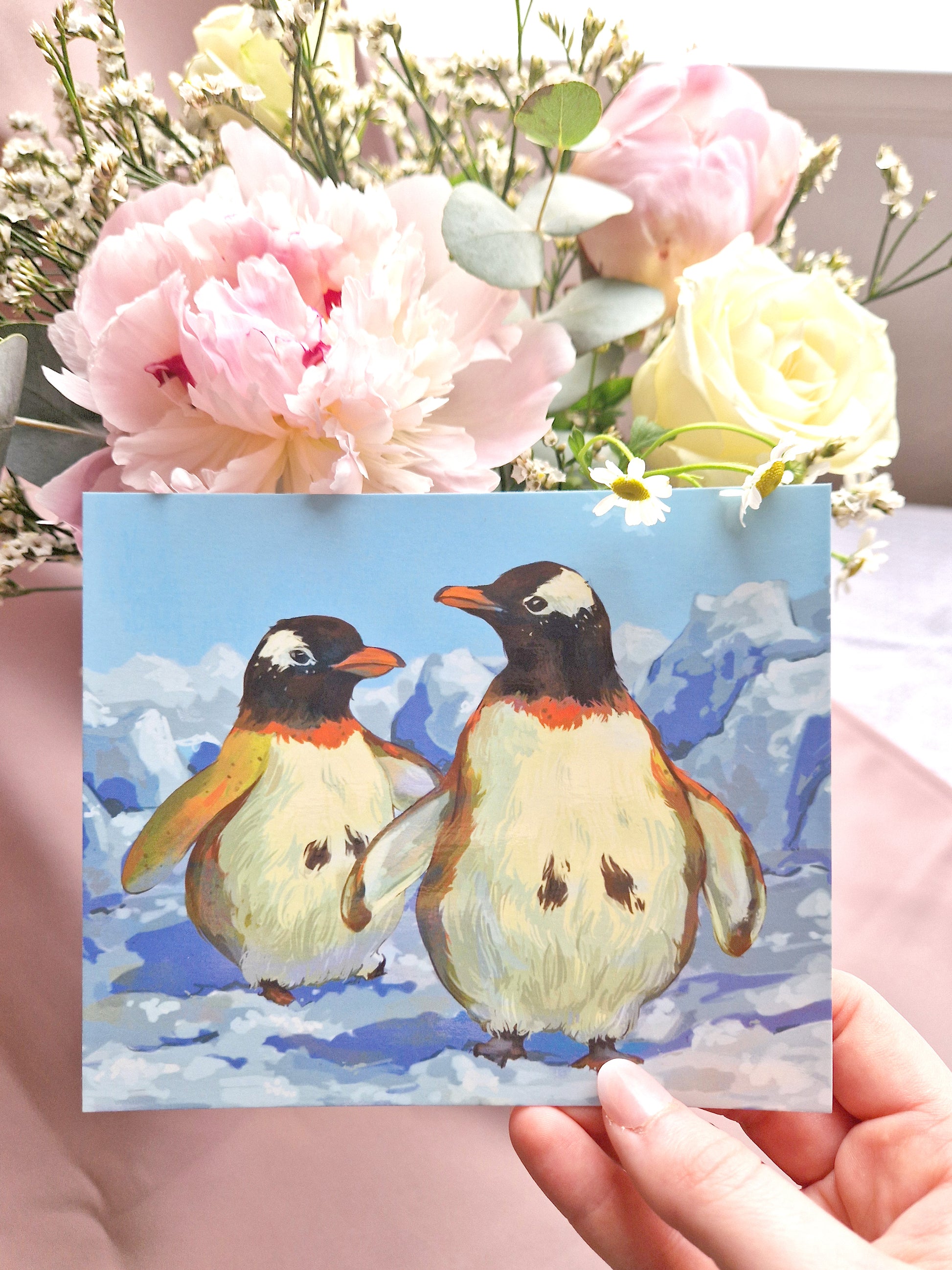 Eine hübsche Karte für alle Pinguinfans, zum Schenken oder einfach dekorativ Aufstellen.